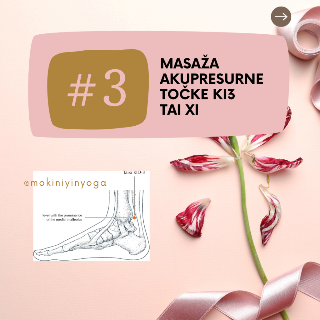 Točke CV4, KI3, LR3 masiramo, lahko pa tudi moksamo. Vedno pa se je dobro pred tem posvetovati tudi s TKM zdravnikom.