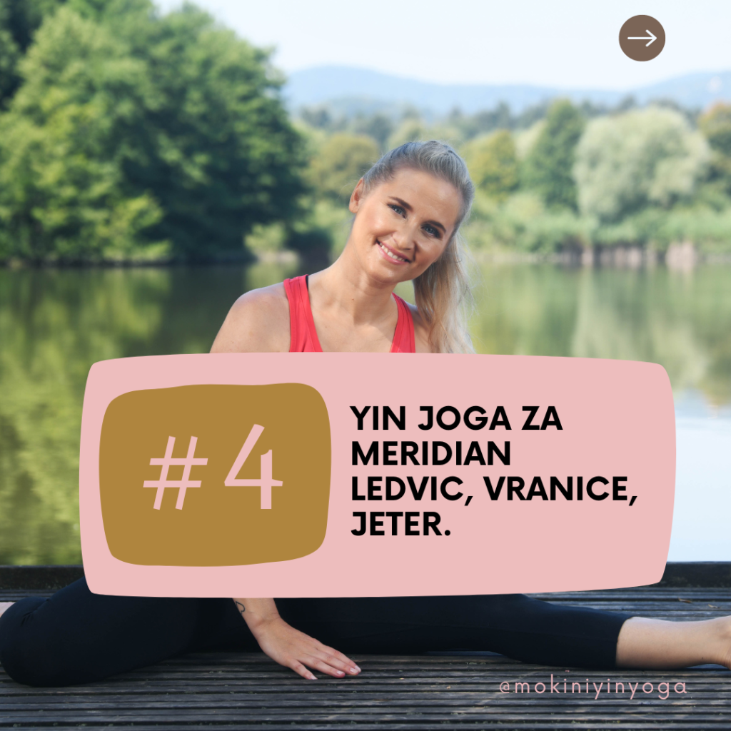 Idealno pa je, da kombiniramo še z yin jogo za zgornje meridiane. Na primer položaj gosenice, kačji pastir, kamela, metulj. Oglejte si posnetek yin joge za element lesa, se pravi meridian Jeter, kliknite TUKAJ.
