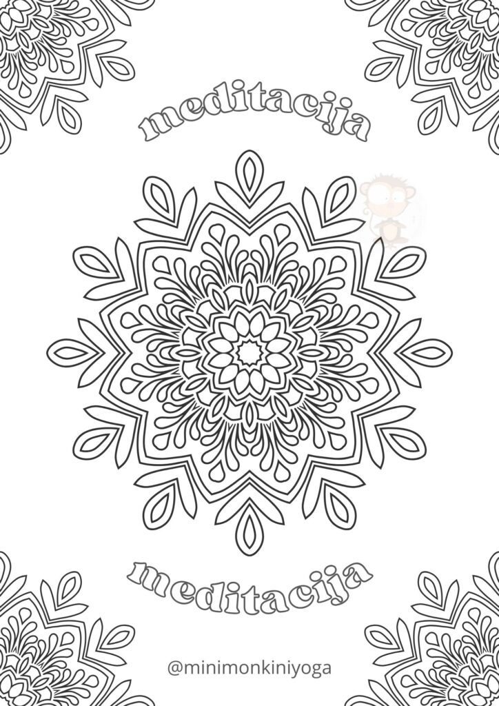 - MANDALA; ustvarjanje mandale je res zabavno. Istočasno prebuja kreativnost, stimulira obe možganski polovici in umirja. Mandale lahko sami narišete, lahko je kot pobarvanka ali pa ustvarite iz različnih predmetov. Idealno je, da naredite mandalo kar v naravi iz naravnih materialov. Pomembno pa je, da uporabite tisto, kar je narava že podarila in ne trgamo ali lomimo živih rastlin. Prenesite si mandalo spodaj in jo pobarvajte. Lahko jo objavite v story in označite #minimonkiniyoga.