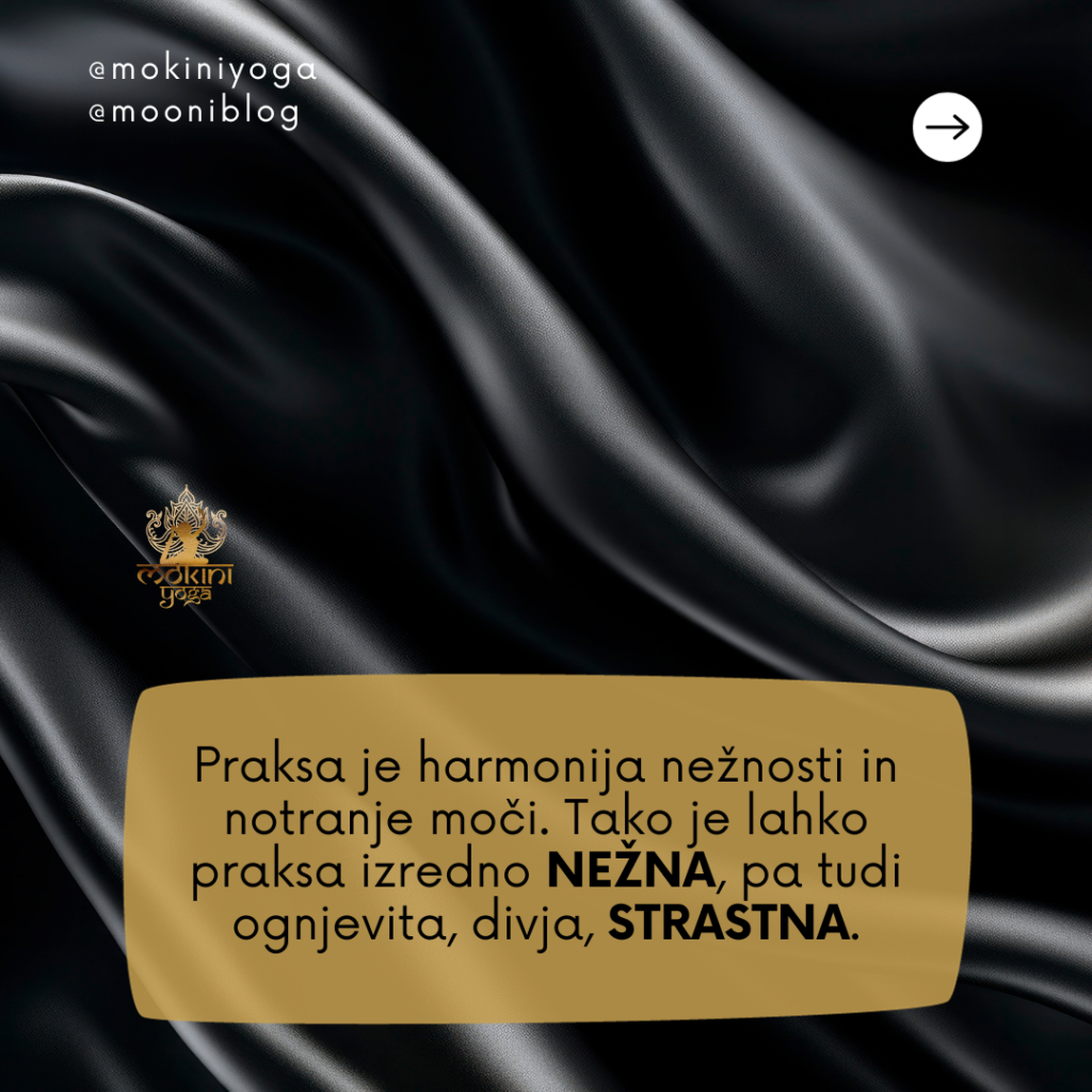 Praksa je harmonija nežnosti in notranje moči. Tako je lahko praksa izredno NEŽNA, pa tudi ognjevita, divja, STRASTNA.