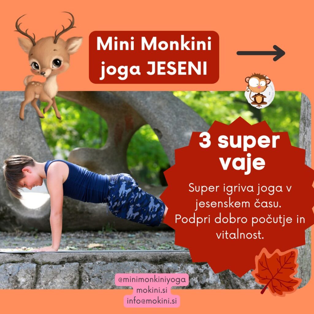 Joga in čuječnost za otroke JESENI in seveda v super družbi z Mini Monkini yoga. Danes s tabo podelim nekaj idej. V jesenskem obdobju je zelo pomembno podpreti meridian Pljuč in Debelega črevesja po TKM. Iz vidika ajurvede pa posebno pozornost namenimo uravnoteženosti Vata doshe.