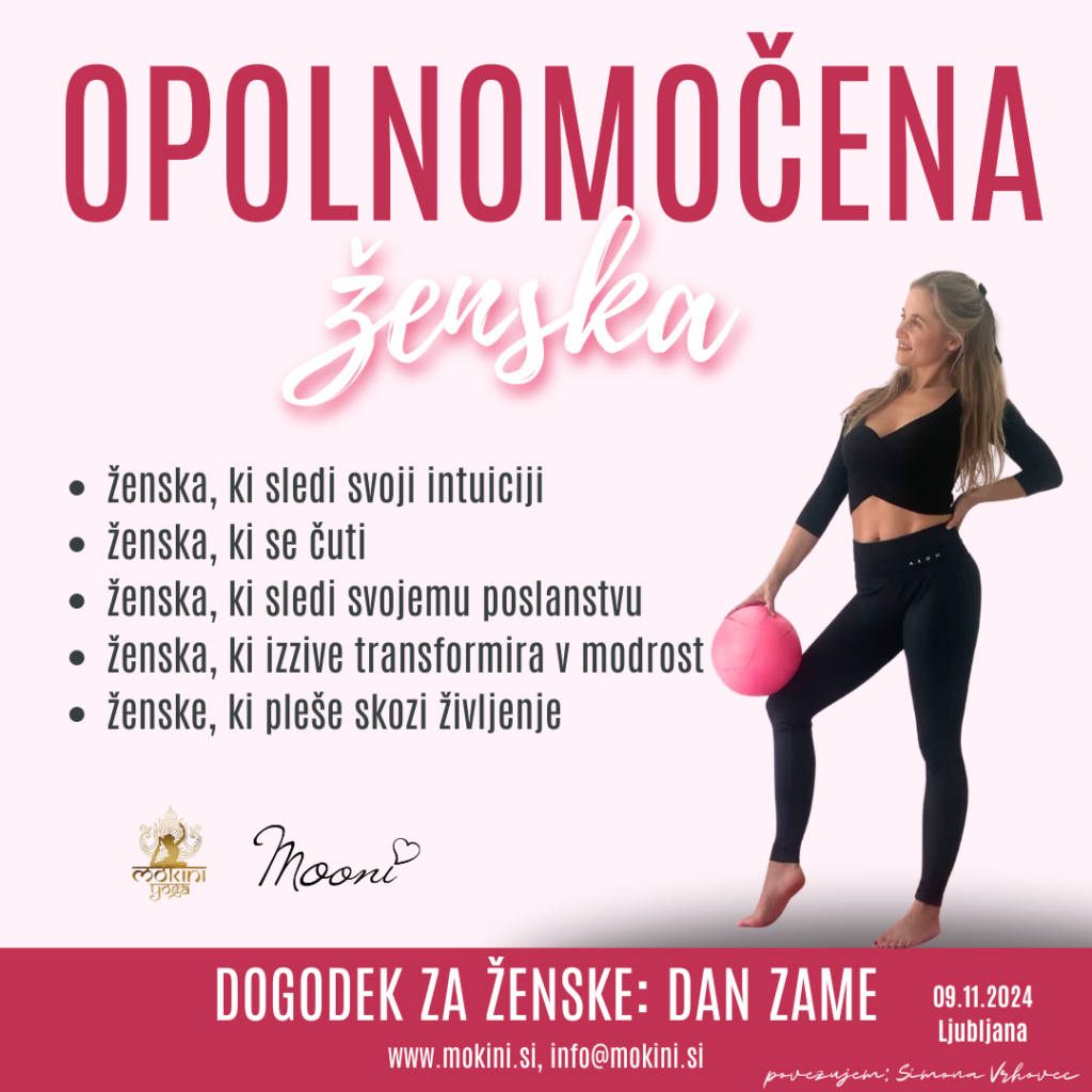 Vabljena na izjemni dogodek, kjer prebujamo opolnomočeno žensko energijo. Od znotraj navzven. V izjemno harmonijo. Dogodek se odvija 09.11.2024, v Ljubljani. Več TUKAJ.