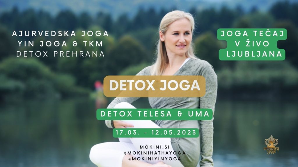 - Detox joga; to je kombinacija ajurvedske joge in yin joge, kjer združujemo znanje iz joge in obeh tradicionalnih pristopov – ajurvede in TKM. To je po mojih osebnih izkušnjah pravzaprav optimalna kombinacija, saj združuje tradicionalno modrost in vnese harmonijo v naše življenje. Preko asan, dihalnih tehnik, meditacije. Povezuje tako marma točke, kot meridiane. Preberite, kaj je ajurvedska joga in kaj je yin joga.