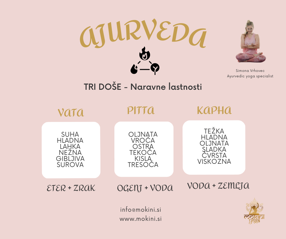 Preberite še blog prispevke: Ajur joga = ajurvedska joga – joga in ajurveda, Ajurvedska joga za Vata došo, Ajurvedska ura, Ajurvedska prehrana.