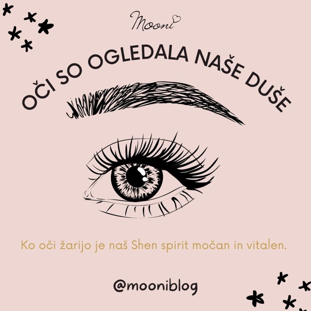 Pravijo, da so oči ogledala naše duše. To bi lahko povezali s Shen spiritom ( duša ). Oči, ki sijejo, so jasne in čiste nakazujejo, da je naš Shen vitalen in zdrav.