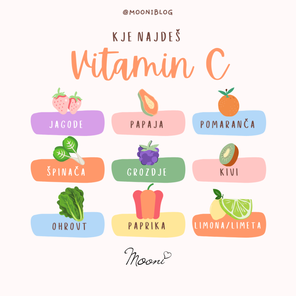 Največ vitamina C najdemo v sadju in zelenjavi. Jaz se resnično potrudim, da čim več živil kupujem lokalno in direktno pri kmetu, ki ima veselo sadje in zelenjavo. Seveda kupujem tudi v trgovini, a moram priznati, da je pri večini živil opazna razlika v okusu, nekje pa razlike niti ne opazim.